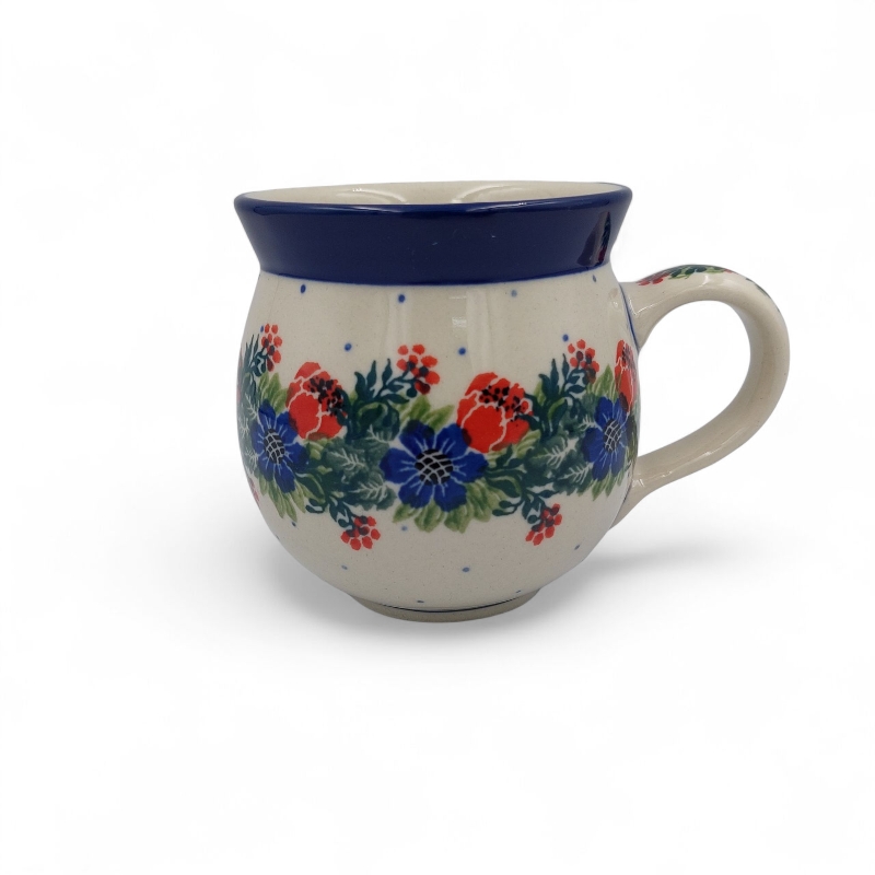 Każdy kubek jest ręcznie zdobiony klasycznymi wzorami charakterystycznymi dla ceramiki z Bolesławca. Dzięki temu każdy egzemplarz jest wyjątkowy. Produkt łączy w sobie piękno rękodzieła z funkcjonalnością – nadaje się do codziennego użytku, a także świetnie sprawdzi się jako prezent.